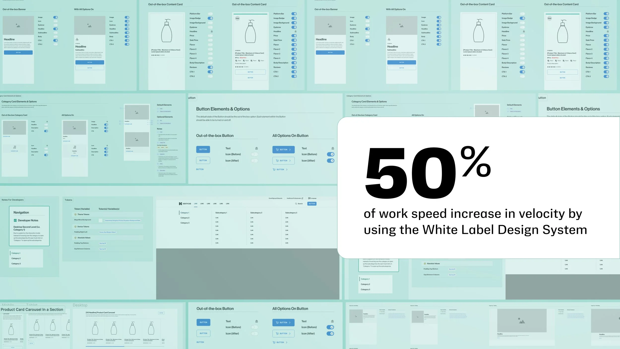 The Kenvue White Labeled Design System has become a foundational tool for scaling digital experiences across hundreds of brands and markets. By balancing flexibility with consistency, we empowered teams to move faster, stay aligned, and deliver better, more accessible experiences to users worldwide. What started as a migration effort quickly evolved into a strategic platform for innovation one that supports brand identity while streamlining execution. With global templates, 97+ components, and a scalable foundation in place, the system continues to grow as a core asset in Kenvue’s digital ecosystem.