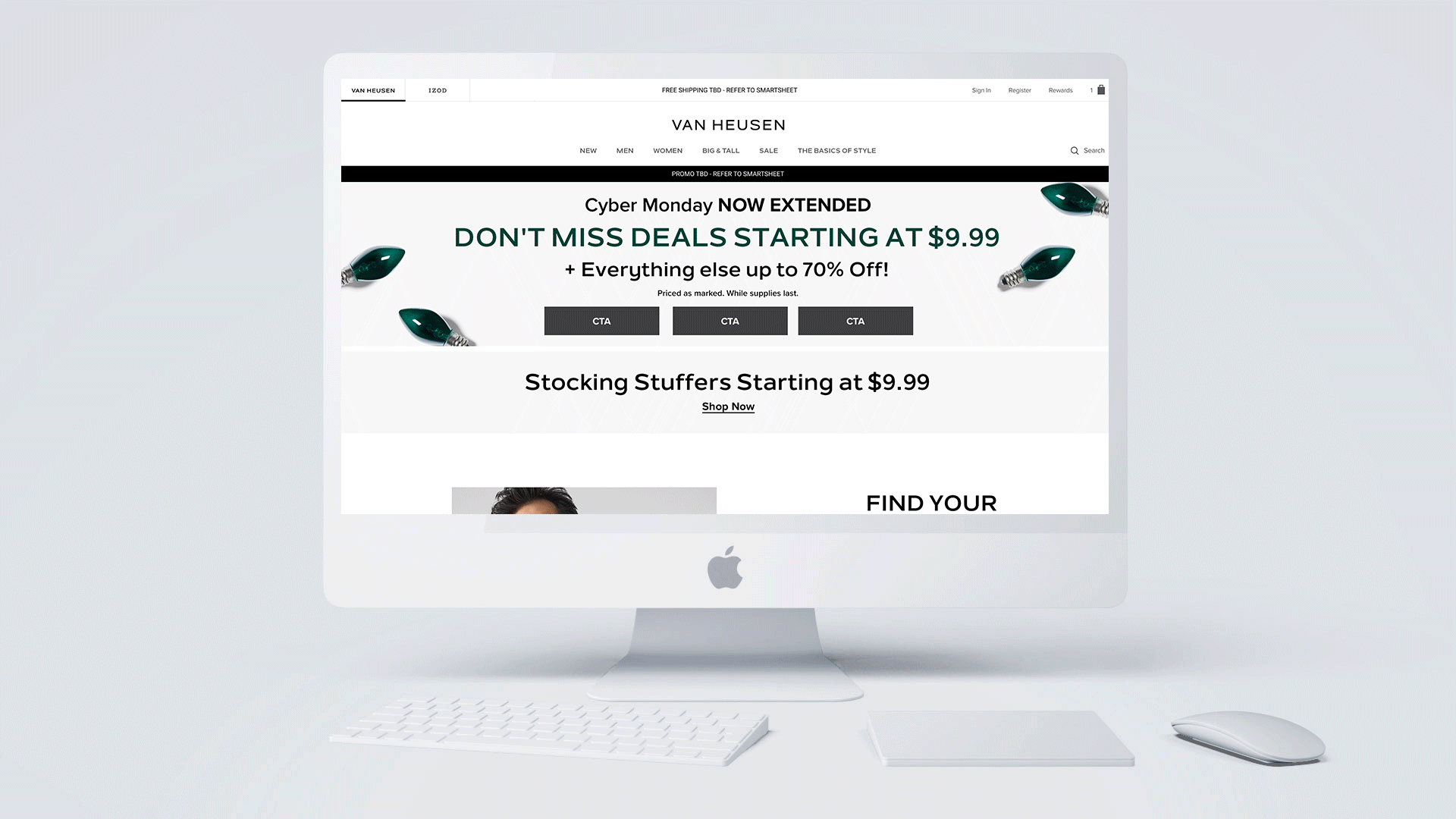 Currently Van Heusen and IZOD both lack site modules to showcase major promotional offerings during holiday events. This leaves us vulnerable to less site traffic and the possibility of not being able to attract potential target consumers. From marketing needs, they want to be able to include price-point callouts to entice and encourage consumers to purchase our sites merchandises.
